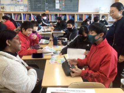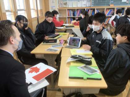 2/4(火)Try English4 公開日 2025/02/04 更新日 2025/02/04 輝く朝中生! 本日、他校のALTの先生が来校し、1年生の英語の授業に参加しています。この1年間で学んだ英語を使って、自分のおすすめスポットについて伝えたり、質問したりしています。写真は16学級です。 1年