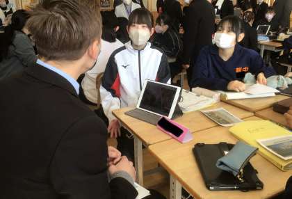 2/4(火)Try English11 公開日 2025/02/04 更新日 2025/02/04 輝く朝中生! 本日、他校のALTの先生が来校し、1年生の英語の授業に参加しています。(小中学校の先生が授業を参観しています。)おすすめスポットについて、英語で会話をしています。写真は18学級です。 1年