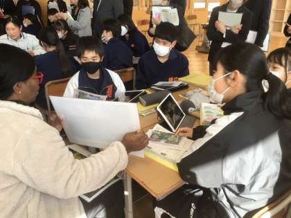 2/4(火)Try English12 公開日 2025/02/04 更新日 2025/02/04 輝く朝中生! 本日、他校のALTの先生が来校し、1年生の英語の授業に参加しています。(小中学校の先生が授業を参観しています。)おすすめスポットについて、英語で会話をしています。写真は18学級です。 1年