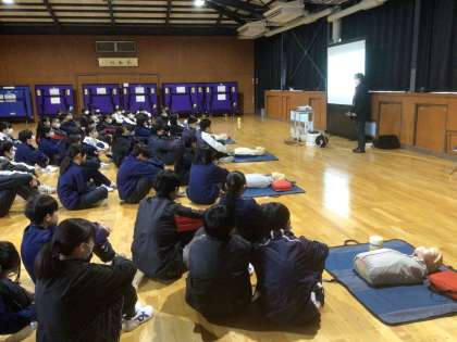 2/4(火)応急手当講習1 公開日 2025/02/04 更新日 2025/02/04 輝く朝中生! 本日、2年生は消防署の講師の方から、応急手当講習を受けました。心臓マッサージの方法やAEDの使い方について学びました。 2年