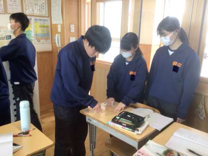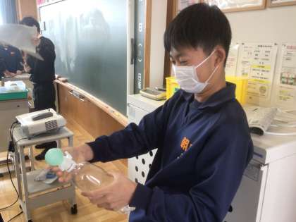 27学級の理科です。さまざまな実験をしながら、気圧の勉強をしています。