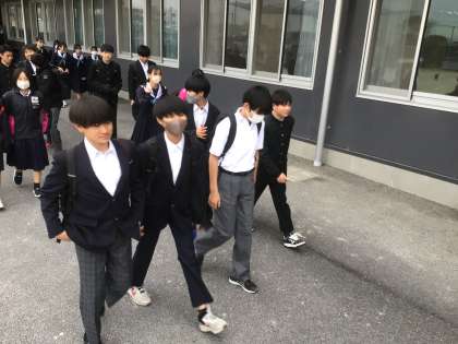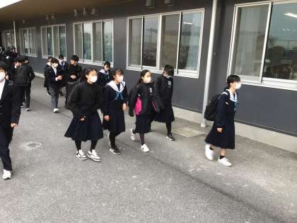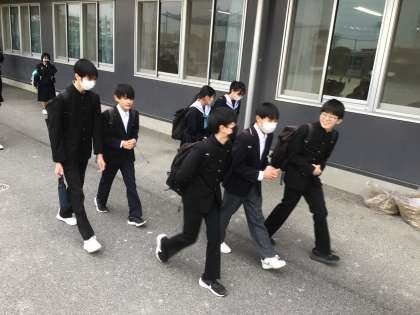 学年末テスト1日目が終わりました。笑顔で下校です。明日のテストもがんばりましょう。(3年生は、明日は授業です)