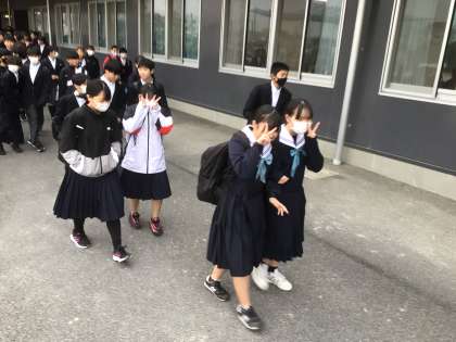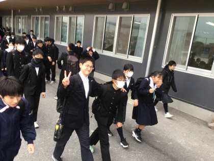 学年末テスト1日目が終わりました。笑顔で下校です。明日のテストもがんばりましょう。(3年生は、明日は授業です)