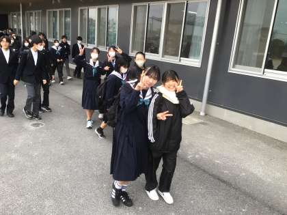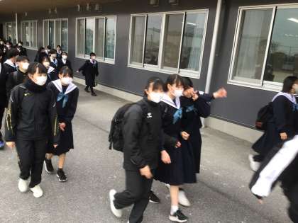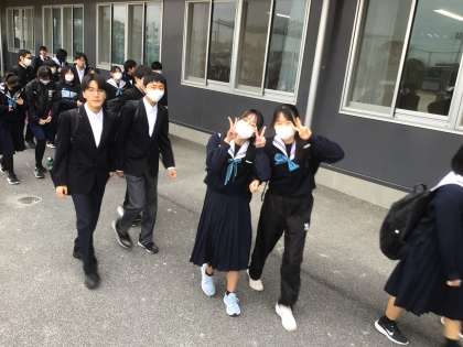 学年末テスト1日目が終わりました。笑顔で下校です。明日のテストもがんばりましょう。(3年生は、明日は授業です)