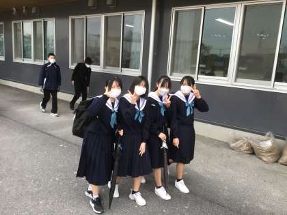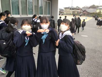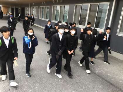 学年末テスト1日目が終わりました。笑顔で下校です。明日のテストもがんばりましょう。(3年生は、明日は授業です)