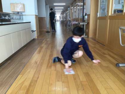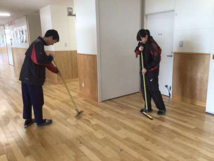 1・2年生の下校後、3年生が地域貢献活動として、校舎をきれいにしています。