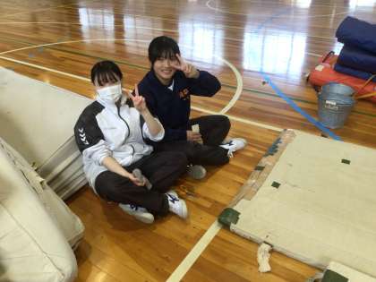 体育館をきれいにします。