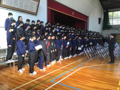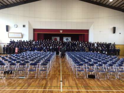 3年生が卒業式に向けて、合唱隊形を確認しています。