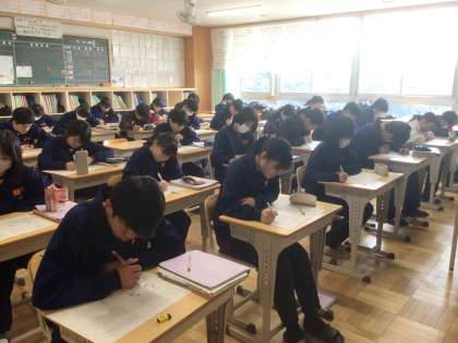 2/18(火)授業の様子1 公開日 2025/02/18 更新日 2025/02/18 輝く朝中生! 3年生の授業です。来週の公立高校の入試に向けて、練習問題に取り組んでいます。すでに進路が決まった生徒もいますが、最後まで全員で学習を続けます。写真は上から、3組、5組、8組です。 3年
