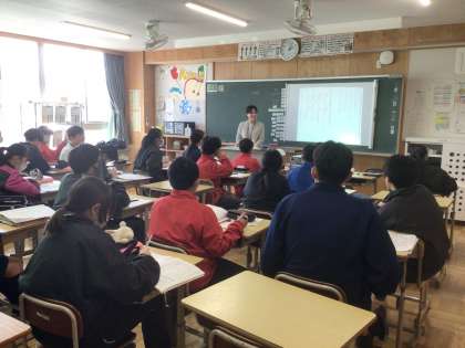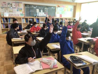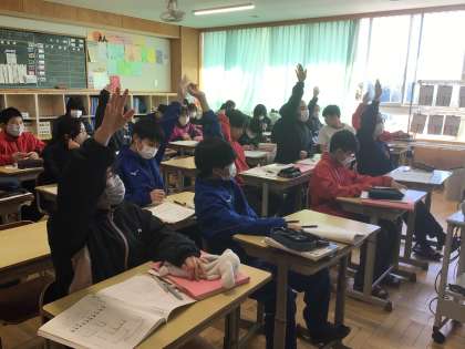 13学級の国語です。文法の学習をしています。挙手がとても多いです。