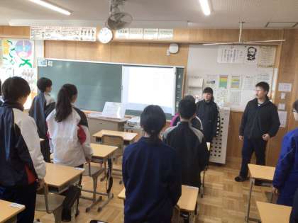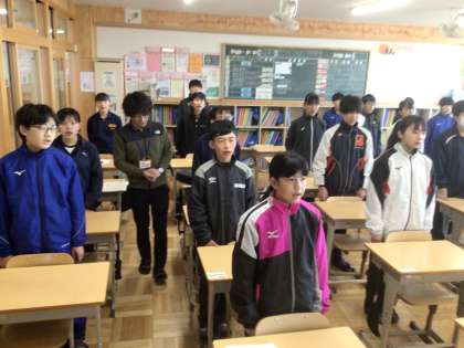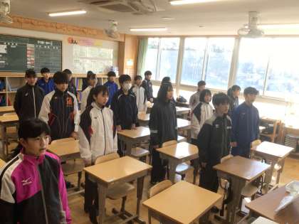 12学級です。卒業シーズンに向けて、校歌を練習しています。