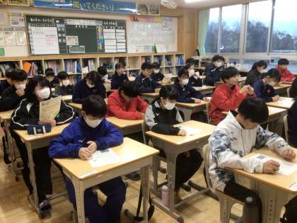 3/3(月)短学活の様子 公開日 2025/03/03 更新日 2025/03/03 輝く朝中生! 本日の短学活は、ほけんだよりを使用して、ソーシャルスキルについて考える時間です。写真は11学級です。 1年