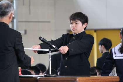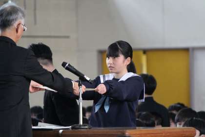 全校生徒で卒業式の予行を行いました。