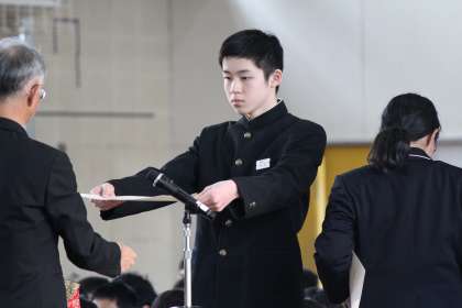 全校生徒で卒業式の予行練習を行いました。