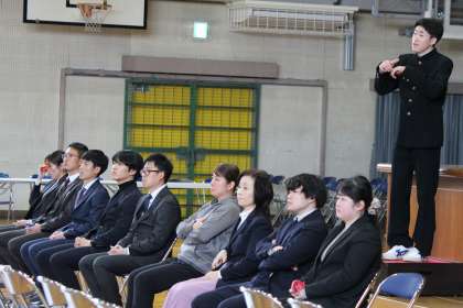 3/6(木)最後の架橋2 公開日 2025/03/06 更新日 2025/03/06 輝く朝中生! 涙あふれる中、最後の「栄光の架橋」を届けます。 (歌詞を紹介します) チョビひげで 黒くて みんなのパパ 〇〇先生 何よりも 給食 大好き 〇〇先生 いつでも ポジティブに 支えてくれた 〇〇先生 明るさが ピカイチ 〇〇先生 3年