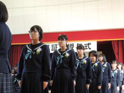 卒業証書授与です。