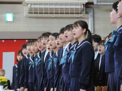 2年生から送別の歌「旅立ちの日に」を届けます。