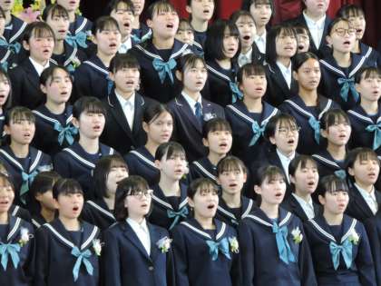 3/7(金)卒業式27 公開日 2025/03/08 更新日 2025/03/08 輝く朝中生! 確かな答えなんて何一つ無い旅さ 心揺れて迷う時も ためらう気持ちそれでも 支えてくれる声が 気付けば いつもそばに 3年
