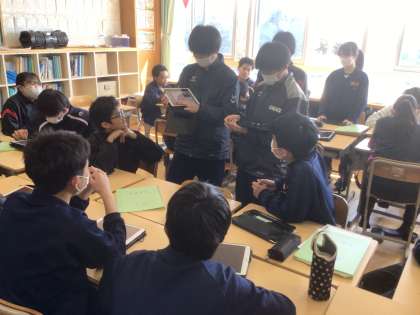 2年生は、職場体験のまとめを1年生に発表する準備をしています。