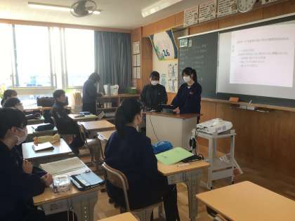 2年生は、職場体験のまとめを1年生に発表する準備をしています。