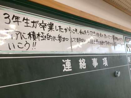1年生の教室の背面黒板です。
