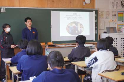 本日、2年生が1年生へ職場体験の経験を伝える報告会を実施しました。