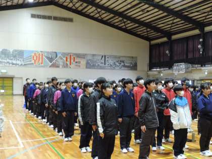 3/18(火)1年生学年レク1 公開日 2025/03/20 更新日 2025/03/20 輝く朝中生! 3月18日に行われた1年生の学年レクリエーション「大円会(だいえんかい)」の様子です。ゲーム、クイズ、有志発表やスライド上映等を行い、学年全員で盛り上がりました。 1年