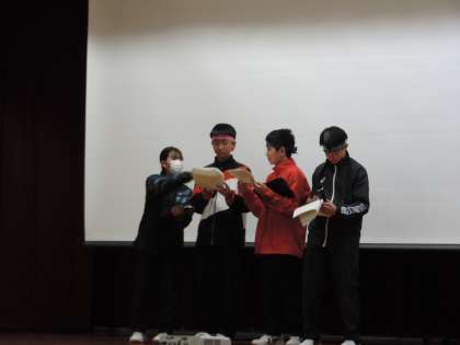 3/18(火)1年生学年レク3 公開日 2025/03/20 更新日 2025/03/20 輝く朝中生! 3月18日に行われた1年生の学年レクリエーション「大円会(だいえんかい)」の様子です。ゲーム、クイズ、有志発表やスライド上映等を行い、学年全員で盛り上がりました。 1年