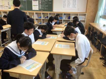 21学級です。給食の流れを確認しています。