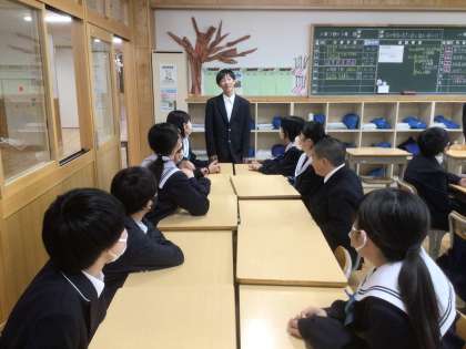 28学級です。グループで自己紹介をしています。