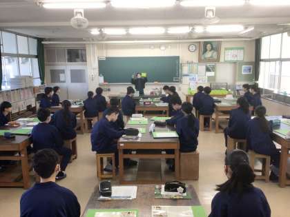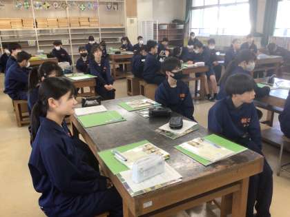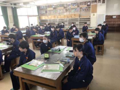 12学級の美術です。美術で使用する鉛筆の説明を聞いています。