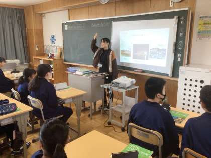 17学級の英語です。教師が行ったことのある国に関するTravel Quizをしています。