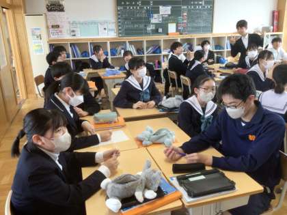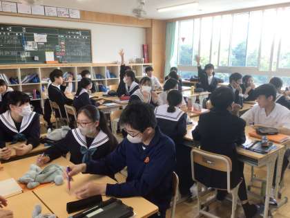 36学級の英語です。グループで動詞の形を復習しています。