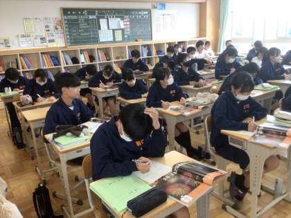 4/17(木)授業の様子2 公開日 2025/04/17 更新日 2025/04/17 輝く朝中生! 21学級の理科です。学習課題は「重曹を加熱すると、どうなるのだろうか」です。次回の実験の見通しを立てています。 2年