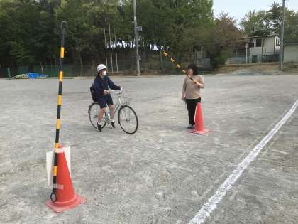 4/18(金)自転車講習会5 公開日 2025/04/18 更新日 2025/04/18 輝く朝中生! 運動場では、「運転技能試験」を取り入れ、通学路を安全に登下校するためのポイントを先生といっしょに確認しています。