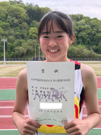 4/20(日)部活動大会結果4 公開日 2025/04/20 更新日 2025/04/20 輝く朝中生! 陸上部です。 西三河中学校春季陸上競技大会 女子100m3位(個人) 他にも自己ベストを更新する選手がたくさんおり、今後がますます楽しみになりました。今後も応援よろしくお願いします。 部活動