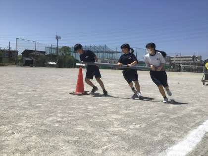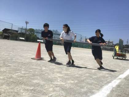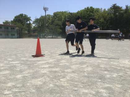 23・24学級の体育です。体育祭の種目の練習をしています。