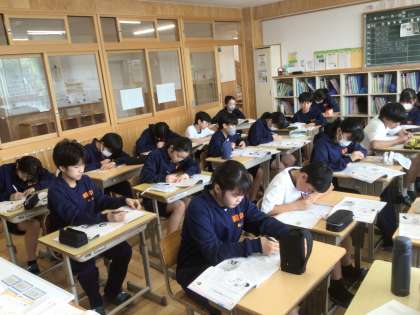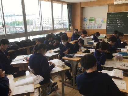 14学級の道徳です。夢をテーマに学習しています。たくさんの意見が黒板に書かれています。
