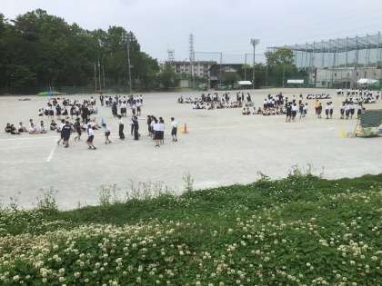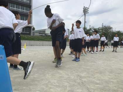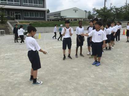 1年生は、学年で8の字跳びの練習をしています。