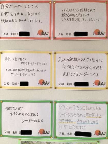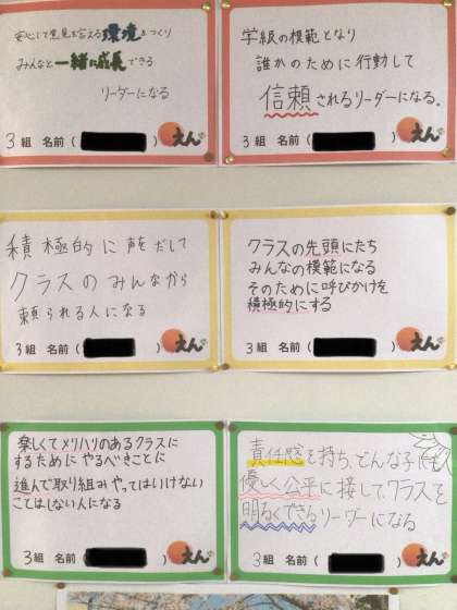 5/7(水)2年生掲示1 公開日 2025/05/07 更新日 2025/05/07 輝く朝中生! 2年生の廊下に掲示されている学級委員・議員・生活向上委員の決意です。リーダーとしての決意が伝わってきます。 2年