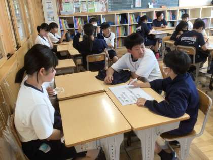 5/8(木)話し合い活動2 公開日 2025/05/08 更新日 2025/05/08 輝く朝中生! 今年度より毎週木曜日に話し合い活動である「わくわくタイム」を全学級で行っています。今日のテーマは「体育祭の練習を通して出てきた課題や対策を考えよう」です。今日の目標は「積極的に意見を出そう」です。28学級は、グループで話し合い、全体で共有します。 2年