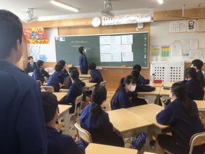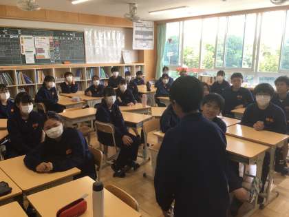5/8(木)話し合い活動3 公開日 2025/05/08 更新日 2025/05/08 輝く朝中生! 今年度より毎週木曜日に話し合い活動である「わくわくタイム」を全学級で行っています。今日のテーマは「体育祭の練習を通して出てきた課題や対策を考えよう」です。今日の目標は「積極的に意見を出そう」です。38学級は、司会を生徒が行い、全体で話し合っています。 3年