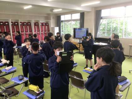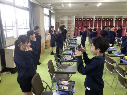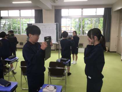5/9(金)授業の様子3 公開日 2025/05/09 更新日 2025/05/09 輝く朝中生! 13学級の音楽です。朝中発声練習の様子を学習用タブレットで動画撮影し合い、発表ノートにデータを貼り付け、表情や口の開きを確認しています。 1年