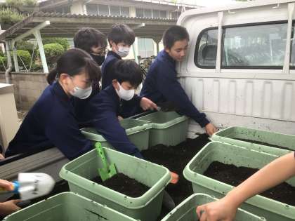 27学級の技術です。「大橋園芸」さん協力のもと、トマトを栽培するための準備を始めています。