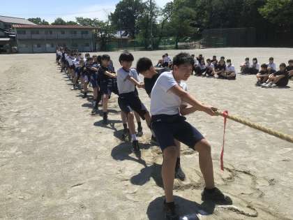 綱引き予選を行っています。3組vs1組です。