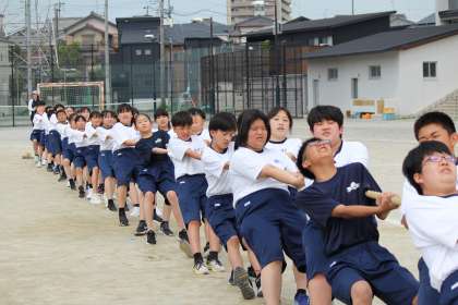 1年生の綱引きです。予選本番です。