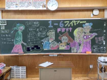 各学級の黒板装飾担当者が描きました。16・15・14学級です。