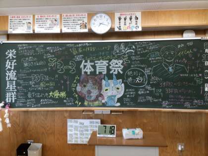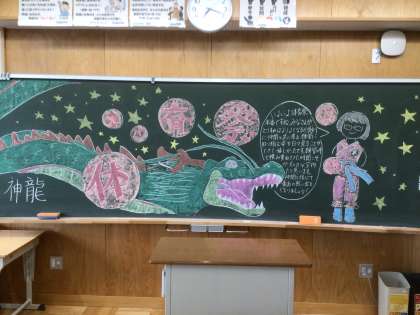 各学級の黒板装飾担当者が描きました。31・32・33学級です。