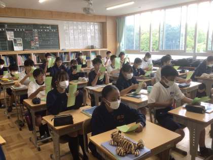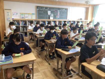 12学級の英語です。英文を音読しています。大きな声が出ています。