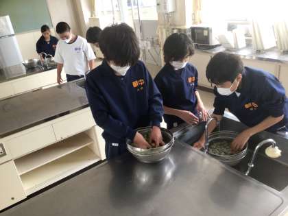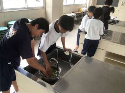 1・2・3・4・5・6学級です。収穫した梅を洗っています。